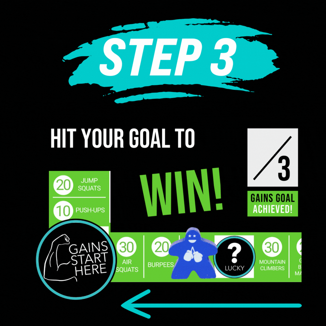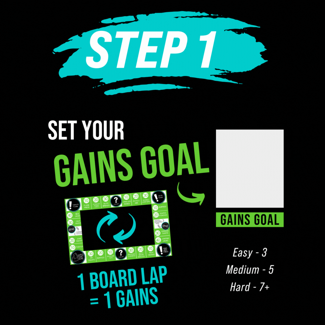 Earn a gain each time you pass ‘Gains Start Here.’ First to hit the goal wins!