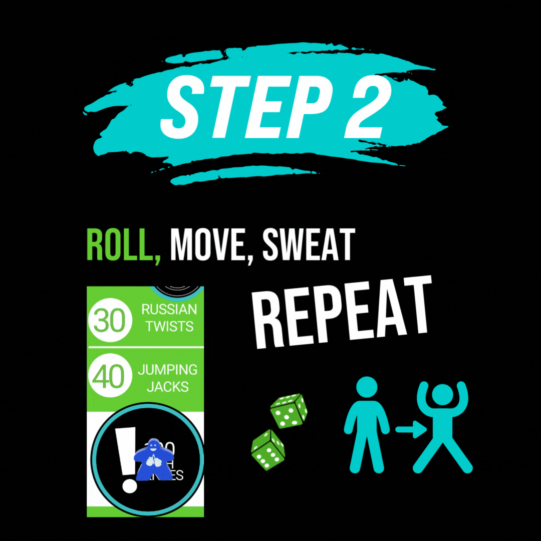 Roll the dice, move your game piece, complete the exercise, and repeat!