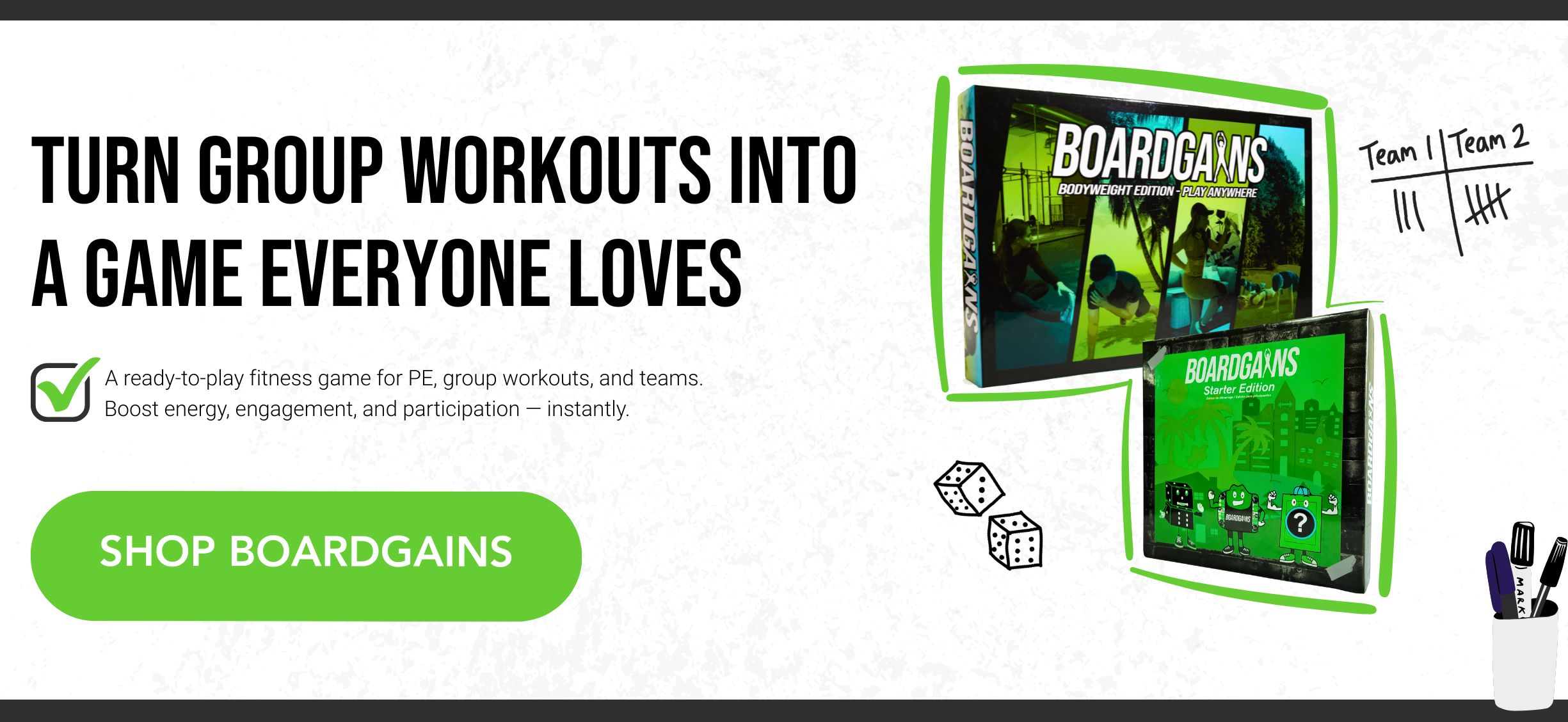 BoardGains is a ready-to-play fitness game that helps trainers turn routine workouts into high-energy, engaging group sessions people actually want to come back for.