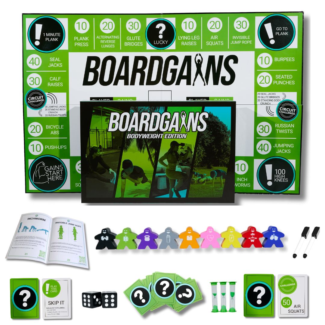 Yes!BoardGains is designed for all ages and fitness levels—kids, adults, and everyone in between. You canadjust the difficultyby changing the number of gains to win and modifying exercises to match different abilities. While it's perfect forages 10+ in group settings, kids as young as5can enjoy it at home with family. 🎲💪